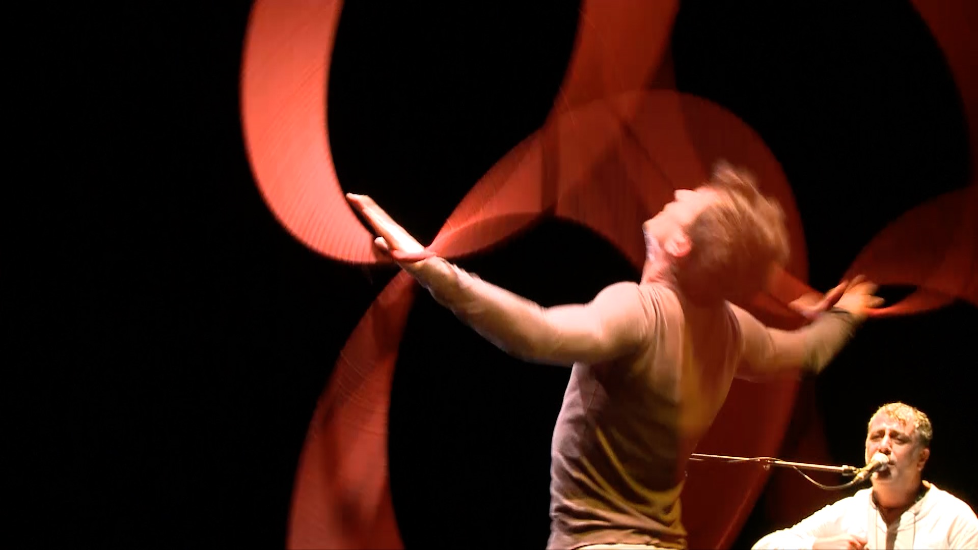 Percussions, oud, clarinette et chants suaves s’unissent au danseur et circassien Sylvain Julien, muni de ses cerceaux, qui tournoie, virevolte, jusqu’à ce que ses gestes fassent corps avec la musique. Fusion entre les arts d’Orient et d’Occident, Derviche est une invitation à la tolérance.